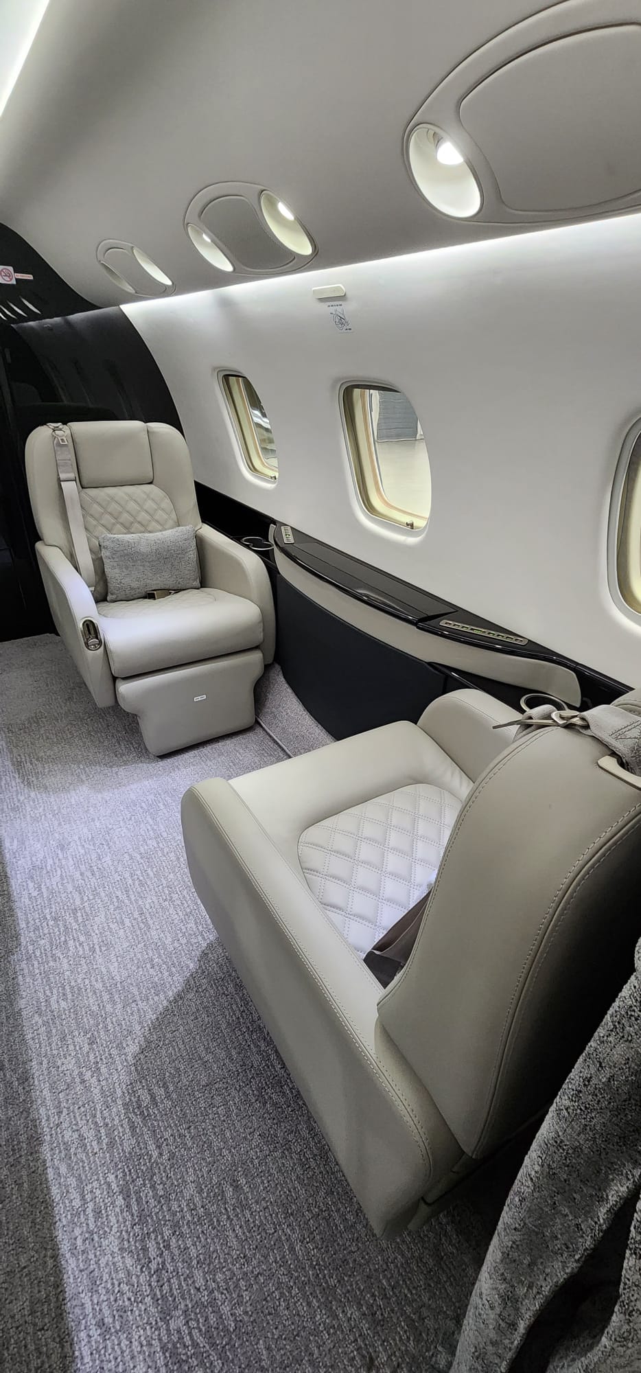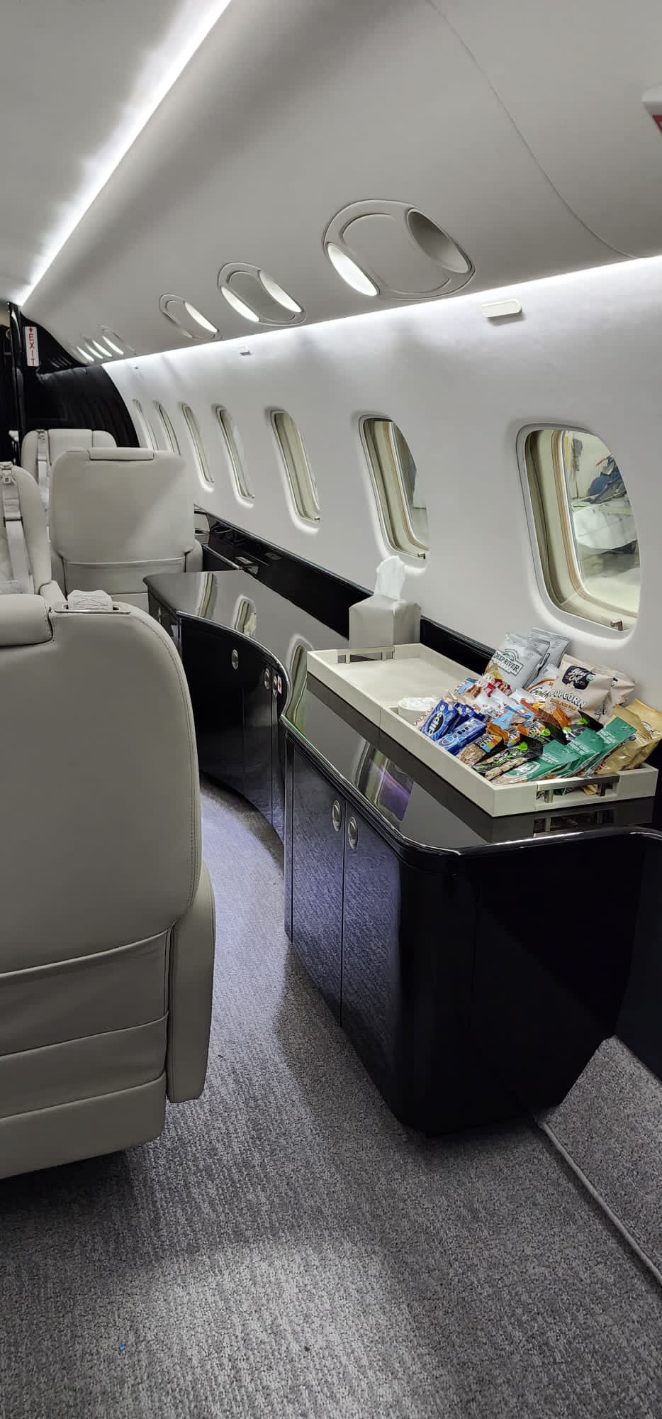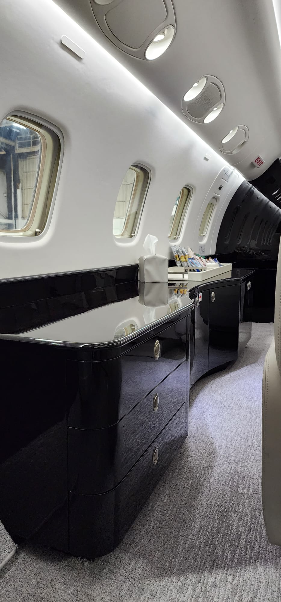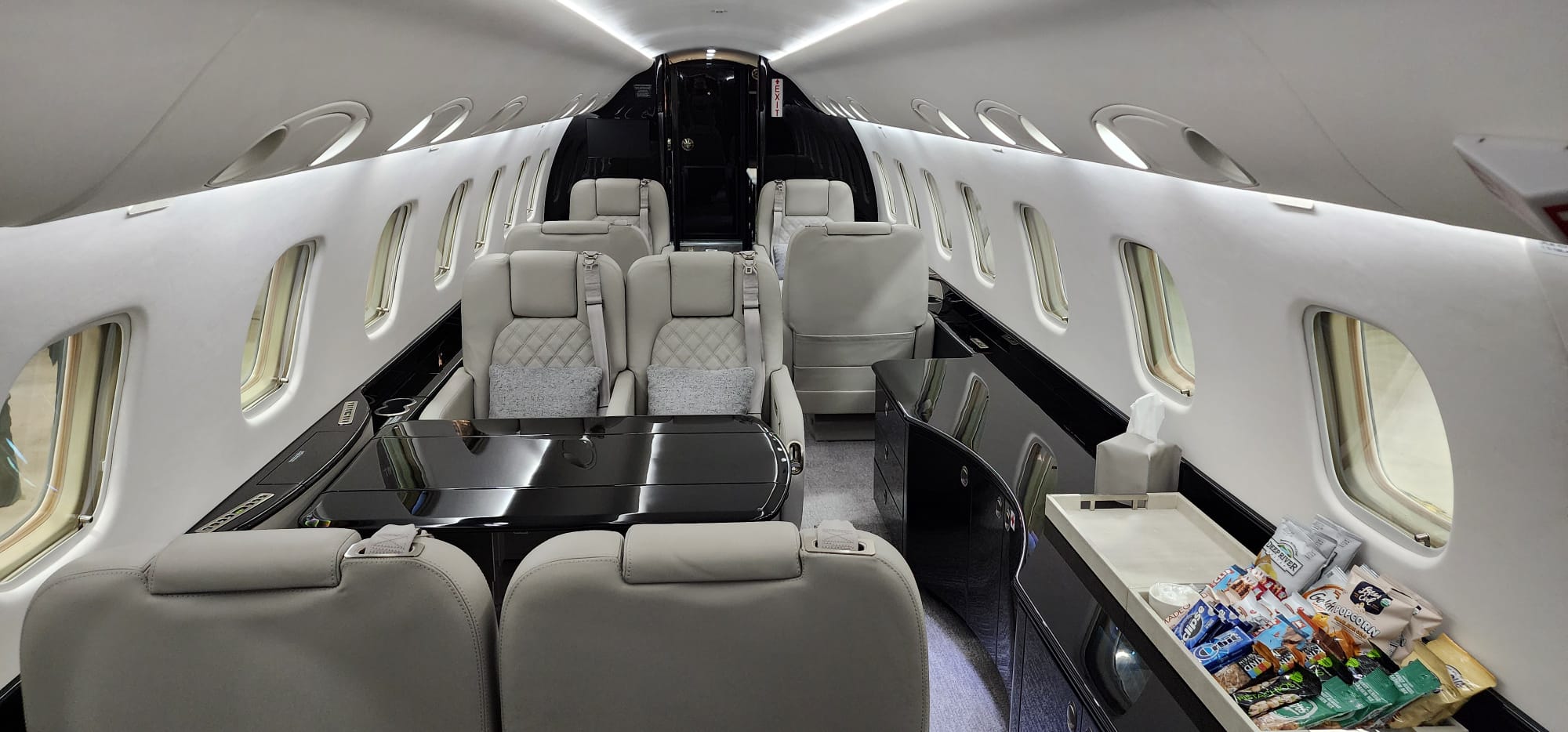 - MID CABIN CONFIGURATION: Four-place conference seating, opposite credenza